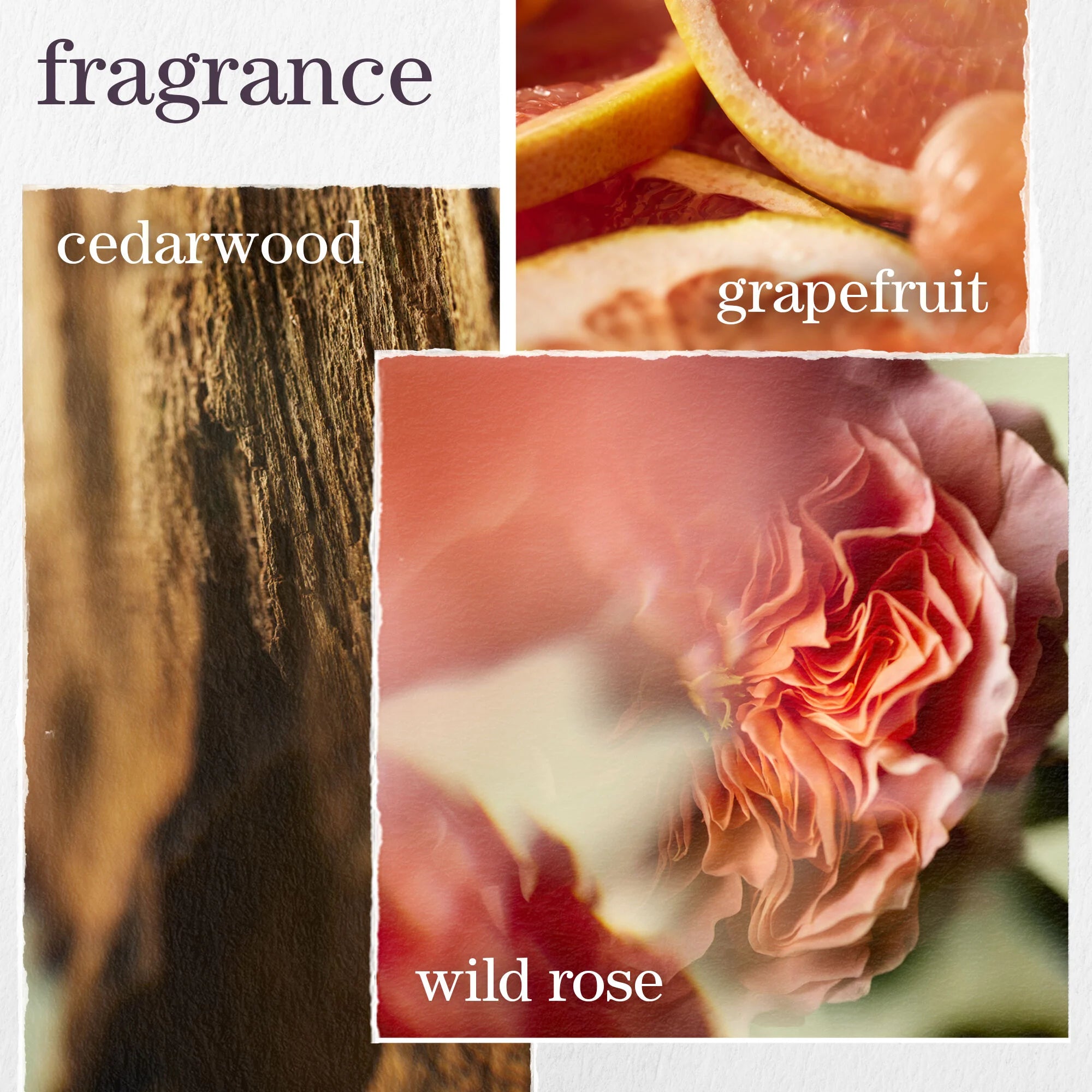 Floating petals: submerge your senses in the ethereal beauty of delicate blooms, featuring a composition of wild rose, cedarwood, and grapefruit that evokes the image of petals delicately dancing through the warm afternoon air.